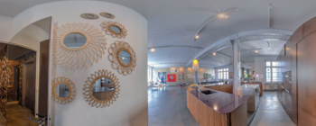 Verwende verschiedene Hotspots, um dich entweder in der Tour zu bewegen oder Informationen und Medien zu öffnen.