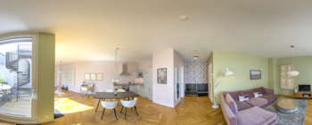 Verwende verschiedene Hotspots, um dich entweder in der Tour zu bewegen oder Informationen und Medien zu öffnen.