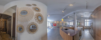 Verwende verschiedene Hotspots, um dich entweder in der Tour zu bewegen oder Informationen und Medien zu öffnen.