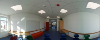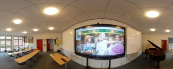 Wir haben einen neuen DS-Raum mit einer Probebühne, auf der wir ungestört proben und Neues ausprobieren können. Für Aufführungen steht uns zudem die große Bühne im Eingangsbereich der Schule zur Verfügung.