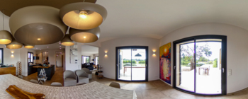 Verwende verschiedene Hotspots, um dich entweder in der Tour zu bewegen oder Informationen und Medien zu öffnen.